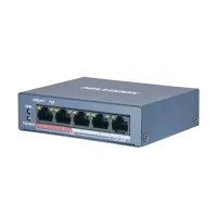 Hikvision 4-Port 100 Mbps Long-Range L2 Unmanaged PoE Switch, 1x 100M uplink port, 1K MAC address table, 802.3af/at, PoE power budget 35W, max. 250m long distance transmission, 48 VDC.