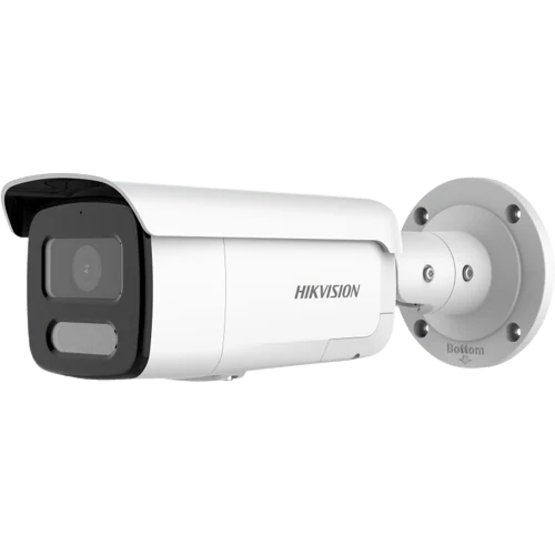 Hikvision DS-2CD2T87G2-LSU/SL 8MP ColorVu Strobe Light and Audible Warning Fixed Bullet Network Camera, 1/1.2″ Progressive Scan CMOS, 24/7 colorful imaging, Focus on human and vehicle targets classification based on deep learning, Built-in two-way audio for audio warning, White Light Supplement Light Range: 60m, 130 dB WDR, BLC, HLC, 3D DNR, Built-in memory card slot, Face Capture, IP67.